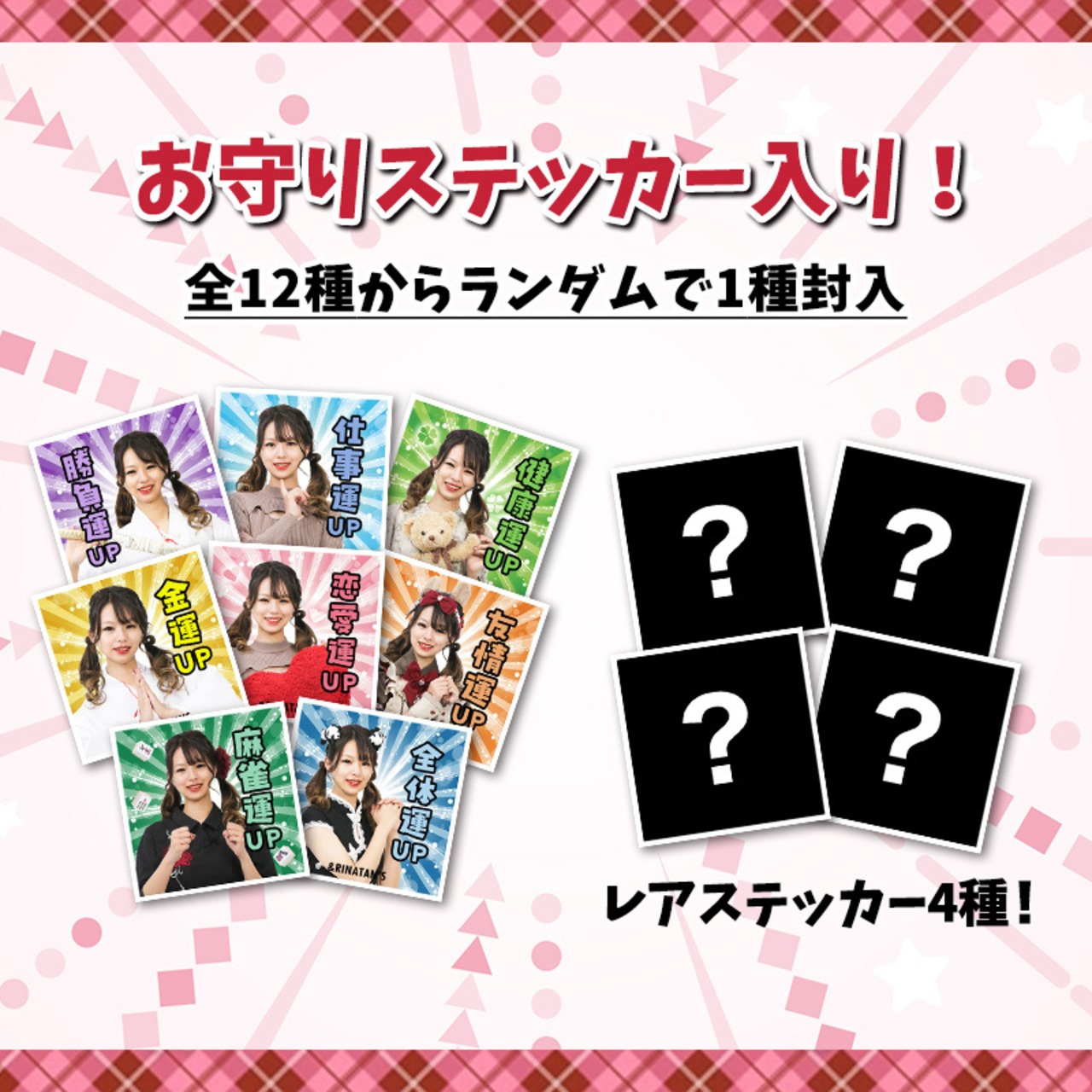 全12種類のお守りステッカーの中から、ランダムで1枚封入。